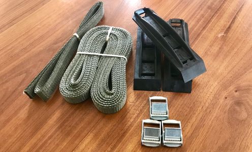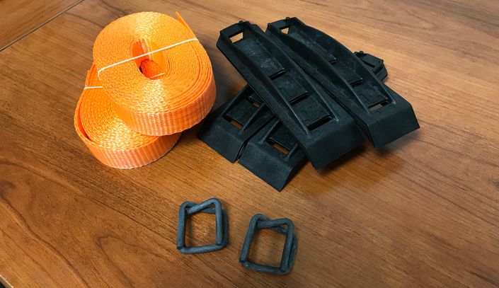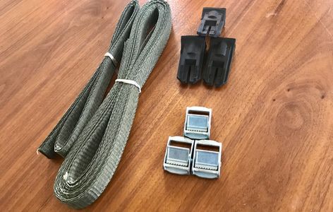 The 1050lb green strapping is ideal for blending into landscaping. All strapping is UV stabilized woven polyester.